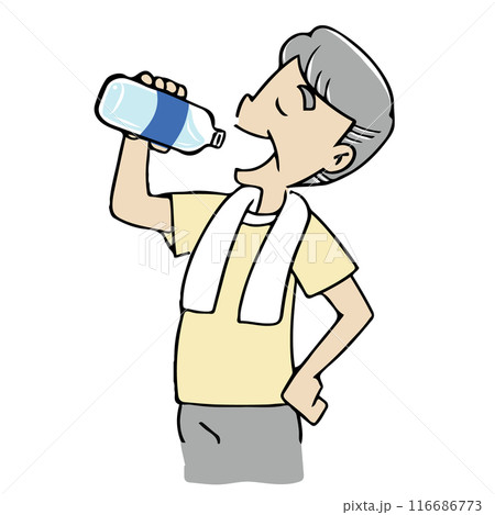 シニアの男性_水分補給をするイラスト