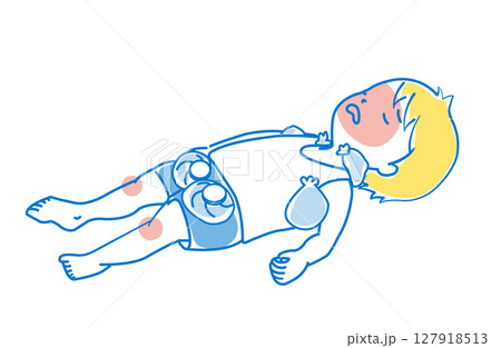 熱中症の応急処置で体を氷で冷却しているイラスト