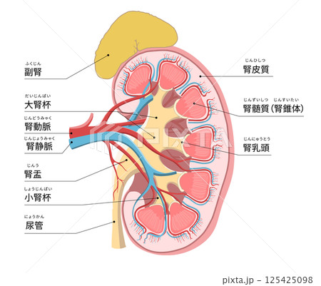 腎臓 構造 イラスト 日本語 解説