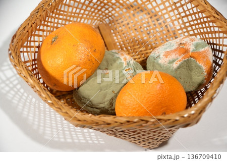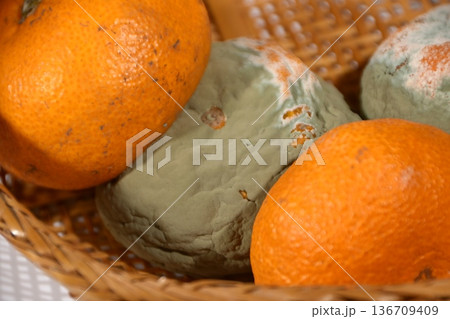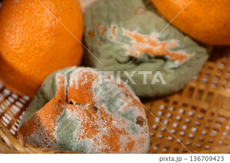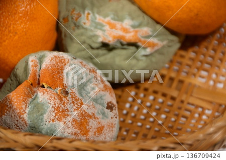 腐ったミカンの写真。腐敗した果物のイメージ。