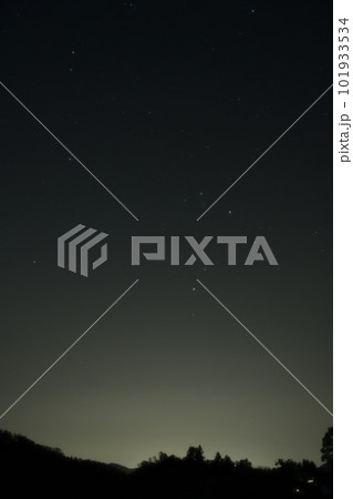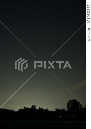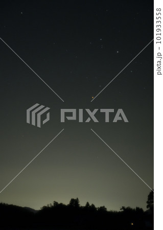 北杜市長坂町、南東の夜空に昇るアンタレス(さそり座)