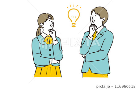 上を向いて閃く男女の学生イラスト