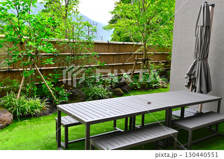 明るい日差しが差し込む明るいカフェ 中庭 スケッチ ガーデニング