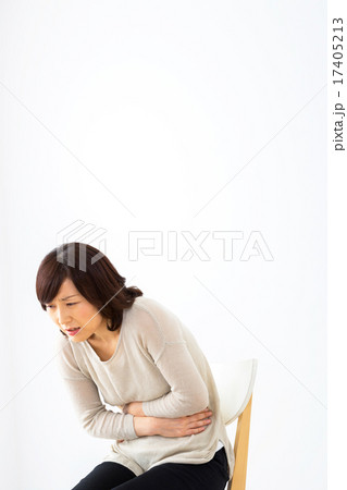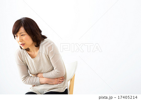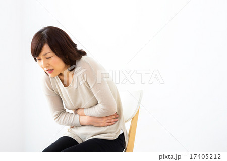 女性 体調不良 腹痛 お腹が痛い 腹下し 主婦 ミドル世代 中高年 セミロングの女性 女の人