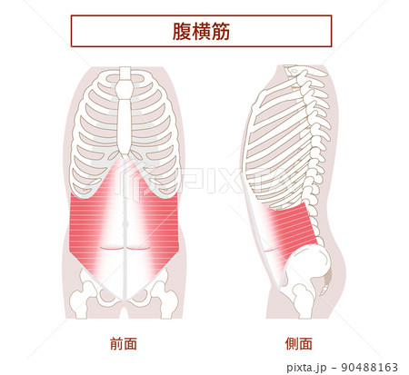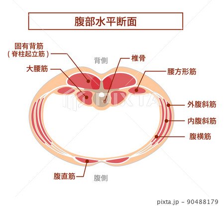 腹横筋 腹筋群の図説イラスト 横向きと正面図