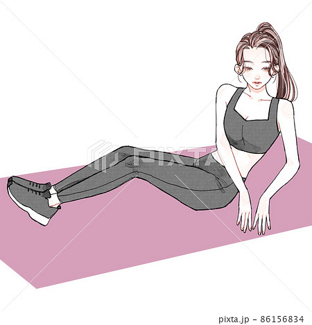 腹筋トレーニングをする女性のセット:ダイエット、ボディメイク、筋活