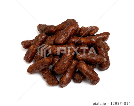 真上から見たテーブル背景の黒かりんとう(黒糖かりんとう)と白かりんとう