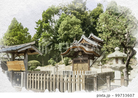 水彩画風 叡福寺 磯長墓 聖徳太子墓 大阪府南河内郡太子町
