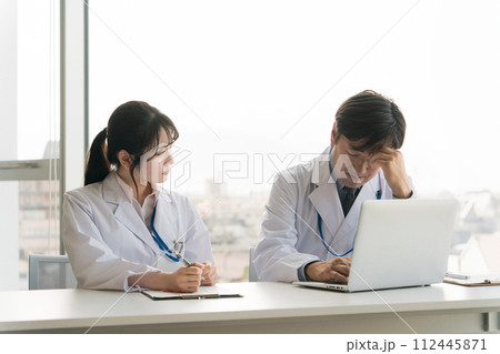 カンファレンス・打ち合わせを行う男女の医師