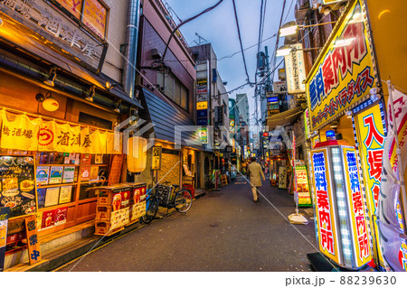 日本の東京都市景観 解除2日目(まん延防止)の新橋・飲み屋街=3月23日