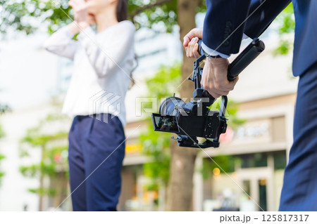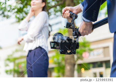 女性モデルをジンバルカメラで撮影する男性カメラマン