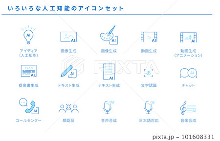 いろいろな人工知能のシンプルアイコンセット、ベクター