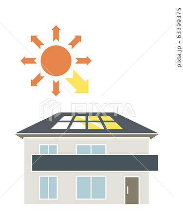 太陽光発電(ソーラーパネル)を設置した一軒家の風景イラスト