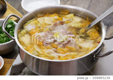 酸菜白肉鍋(台湾料理・酸っぱい白菜の漬物と豚バラの鍋)