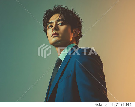 クールで自信に満ちたビジネスマンのドラマチックなポートレート
