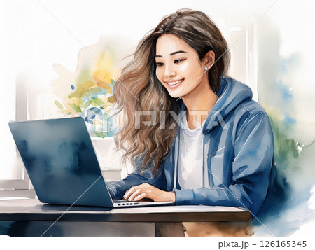 ノートパソコンを抱える笑顔の女性 – ビジネス・IT・キャリアのイメージ(ベクター)