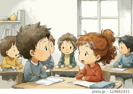 子どもたちが輪になって意見交換をしてい子どもたちが輪になって意見交換をしている授業る授業