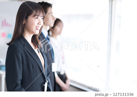 ビジネスパーソン男女_遠くを見て何かを見付ける_2
