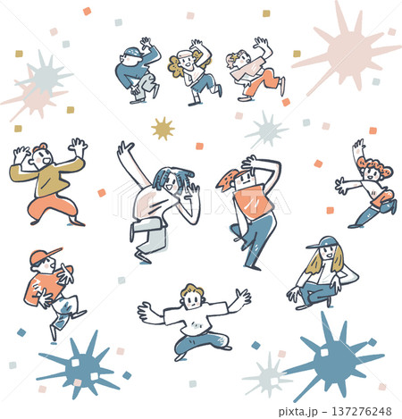 ダンス 楽しい仲間がいっぱい! 習い事 子供 小学生 イラスト大セット 全身 笑顔 元気