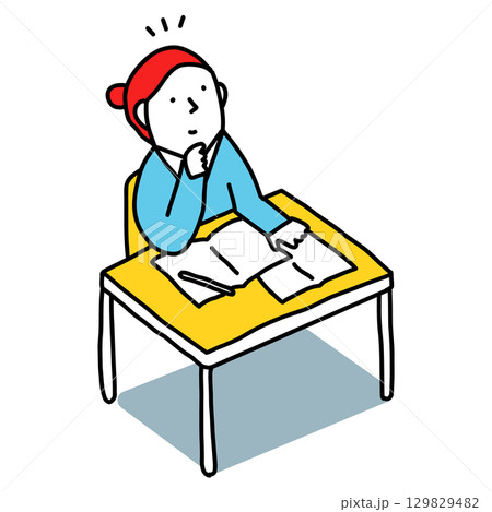 教室で授業を受けるクラスメイトのイラスト 自習する中学生・高校生