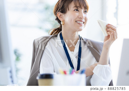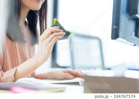 おにぎりを食べるOL、女性、ランチ、食事