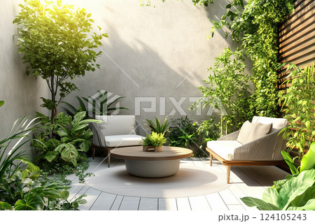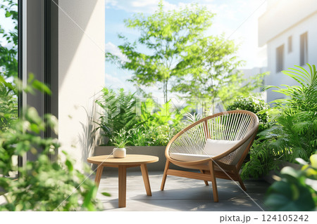 緑に囲まれた小さな庭の癒し空間