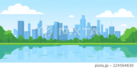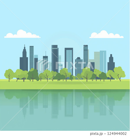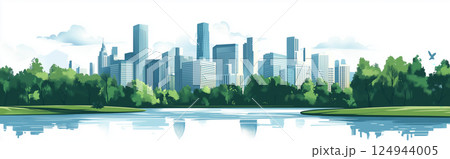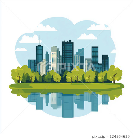 都会の公園と高層ビルの風景(イラスト)
