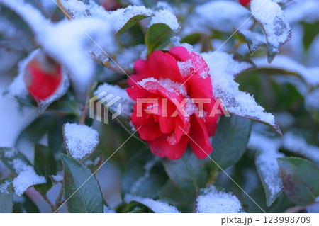雪の中に咲く赤い椿
