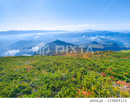 秋の御嶽山登山:剣ヶ峰から王滝頂上・田の原方面の眺め