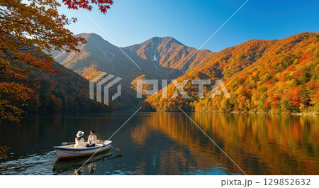 渓流が美しい観光名所、秋の黄葉が鮮やかな森