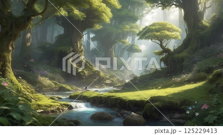 爽やかな新緑の木漏れ日背景希望はる新緑の頃