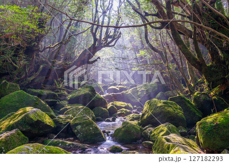 屋久島国立公園 木漏れ日と神が宿る沢(冬