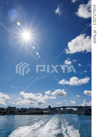 出港した船から見る那覇泊港の風景。泊大橋やとまりんが見える。沖縄県那覇市那覇泊港-2025/6/26