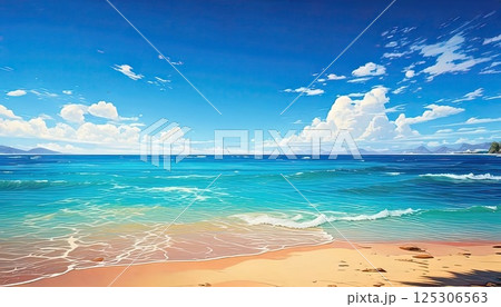 《AI画像》真っ青な海と空をぼかした清涼感のある素材