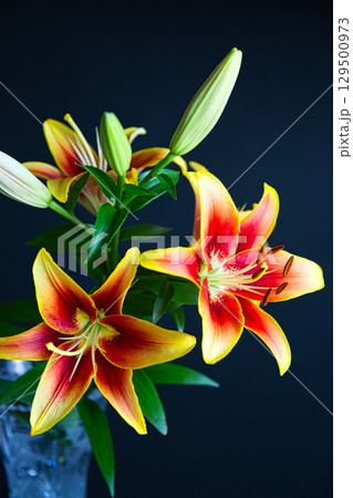 雨の8月に美しく咲いたオレンジ色の檜扇(ヒオウギ)の花