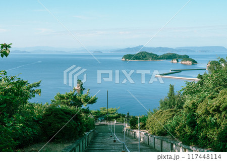 小豆島の富丘八幡神社からの眺め(エンジェルロード方面)