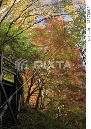 茨城県の小町山(こまちやま)のハイキングコース沿いにある、紅葉がピークのもみじ谷
