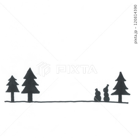 雪だるまと森のイラスト