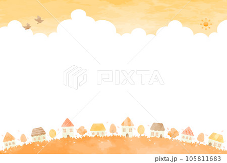 のどかな秋の町並みイラスト