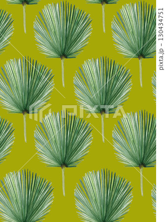 Palm leaf hand painted watercolor seamless pattern on bright green. High quality image perfect for fabric, wrapping paper, wallpaper, eco materials, Christmas decoration design, beach themed projects
