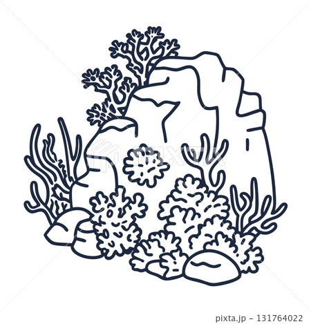 Coral reef illustration with underwater rock and marine plants ocean ecosystem, aquatic biodiversity, nature conservation, AI Generative