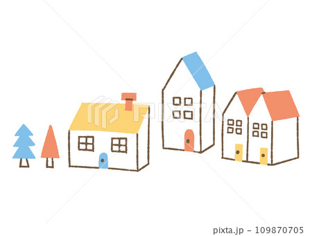 色々な形の家と木がある風景_色