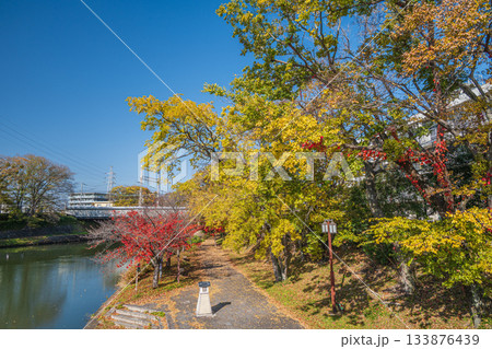 晩秋の濠川沿いの色づく木々 京都市伏見区
