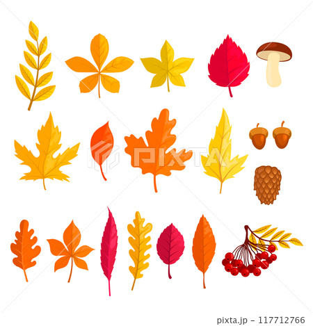 Set of illustrations of autumn leaves in cartoon style. Design element for poster, card, banner. Vector illustration