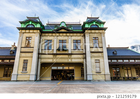 比叡山、坂本ケーブルの山頂駅、登録有形文化財のケーブル延暦寺駅舎。滋賀県、大津市、坂本