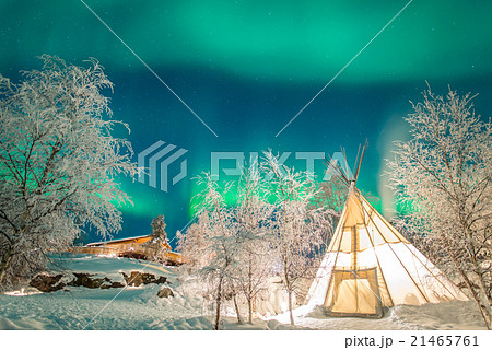 北極圏の美しいオーロラ