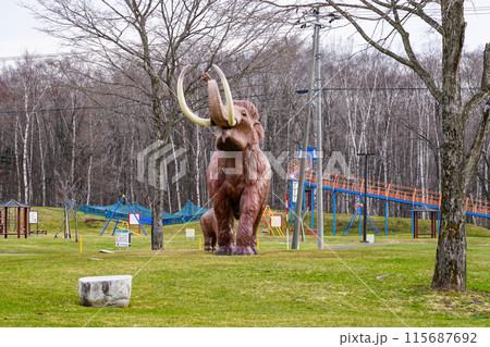 化石発見を記念した北海道ナウマンゾウの親子