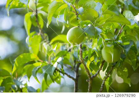 大きな実をならせた梅の木 鳥取県 樗谿公園