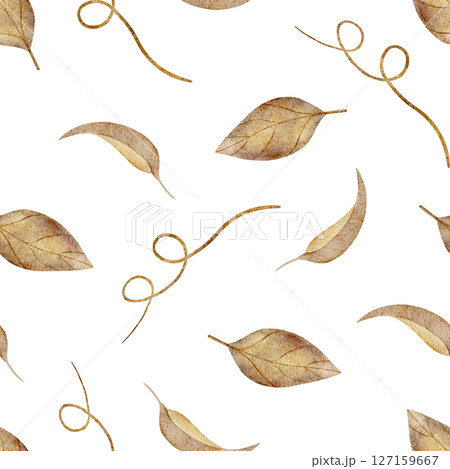 Pattern watercolor illustration orange leaves, foliage falling in autumn, hand drawn yellow beige. Seamless print in retro style on white background textile design fabric, packaging, clothes, postcard