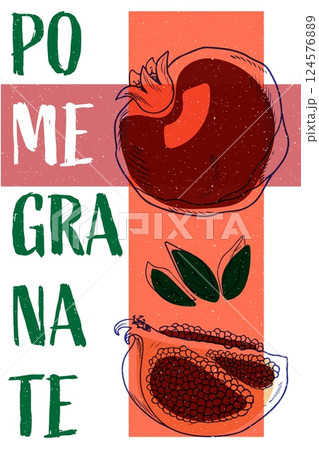 Pomegranate vintage poster design. Fruit art risography style